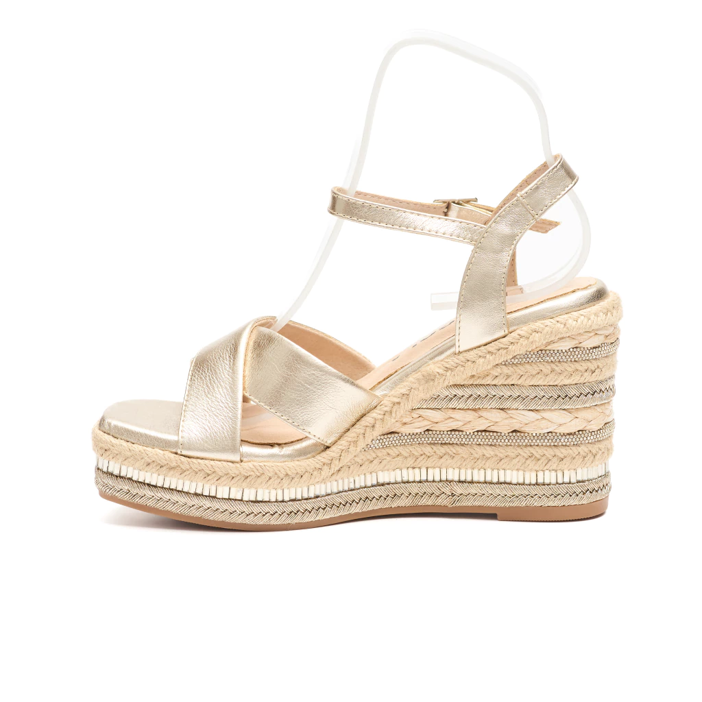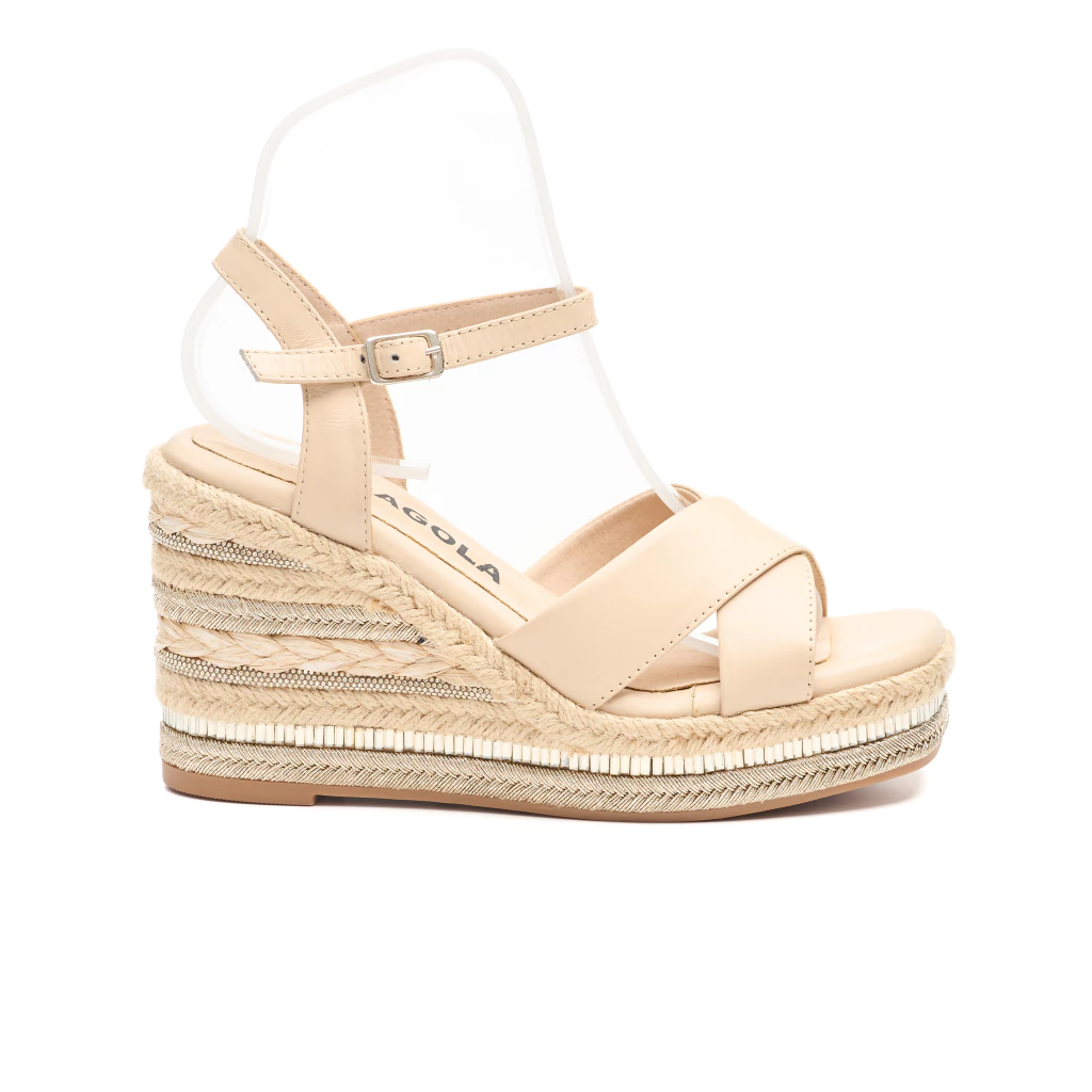 Esta sandalia de cuero combina texturas y detalles que enamoran: una plataforma forrada en rafias y yute que aporta ese encanto artesanal que nunca pasa de moda, junto a un diseño liviano y femenino que estiliza sin esfuerzo.