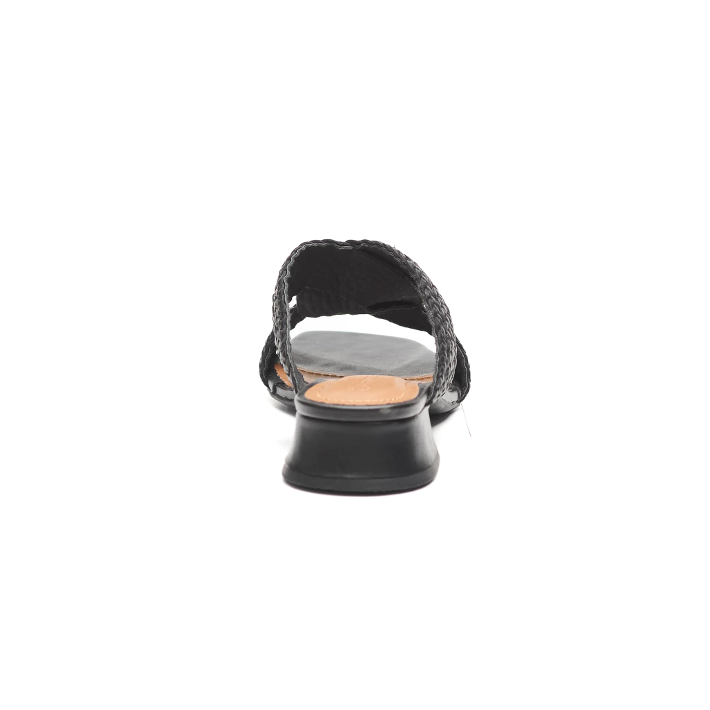 Esta sandalia se destaca por su diseño trenzado que envuelve el pie con suavidad, aportando textura y un toque artesanal encantador. Su base baja y cómoda permite caminar con total libertad, mientras que la plantilla acolchonada ofrece bienestar en cada paso.