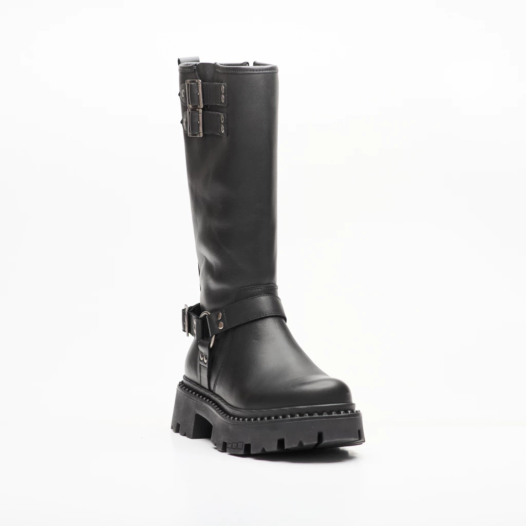 Con un diseño moderno y versátil, es ideal para quienes buscan estilo y comodidad. Su plataforma agrega altura, mientras que su color negro te permite combinarla fácilmente con cualquier look, desde outfits casuales hasta los más atrevidos. Con detalles y un acabado perfecto, esta bota es el complemento ideal para las personas que siguen las últimas tendencias.