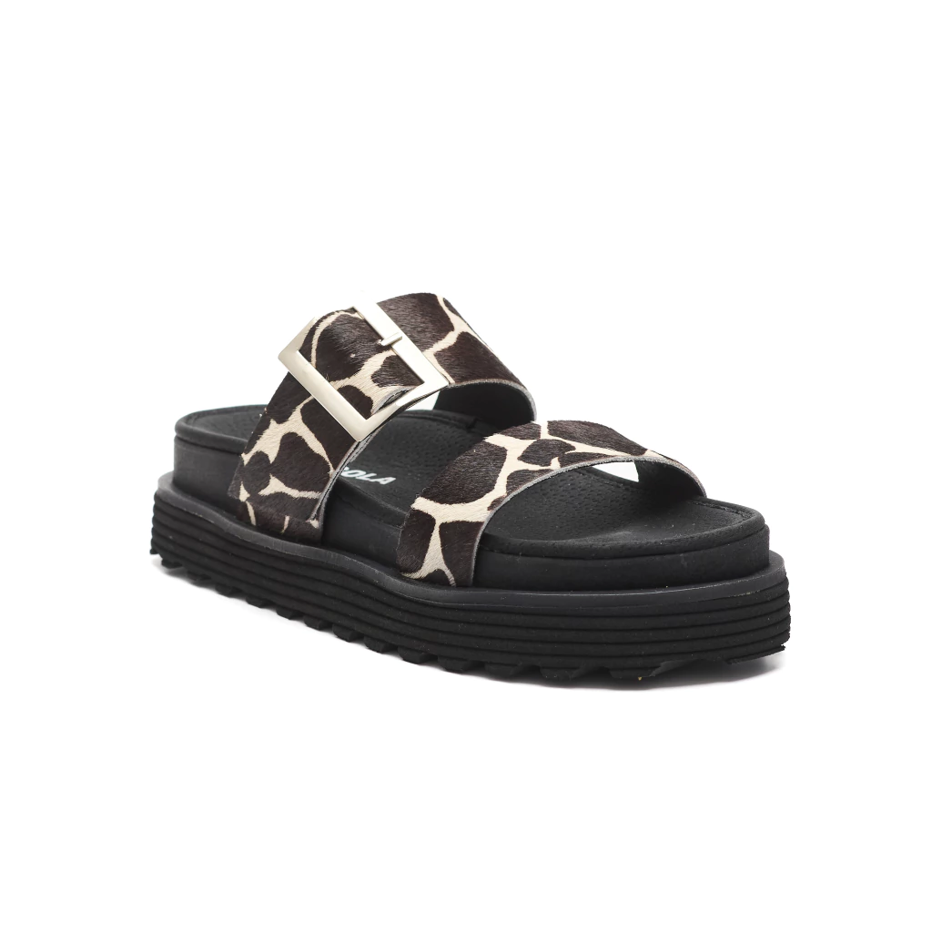 Esta sandalia de cuero pelo con estampado animal te invita a pisar fuerte sin perder el confort. Su hebilla regulable permite un calce perfecto, mientras que la plantilla anatómica y acolchonada abraza el pie con suavidad en cada paso.